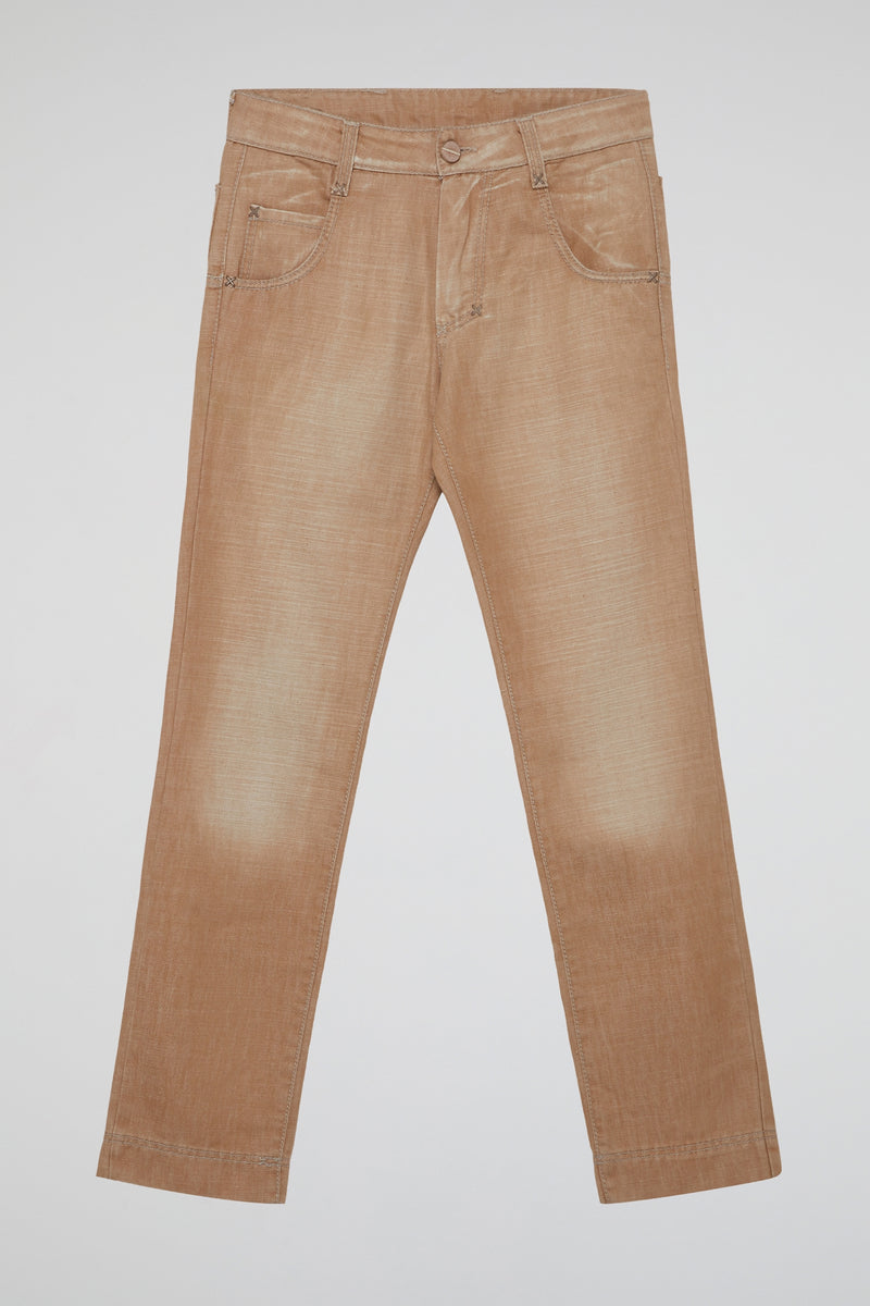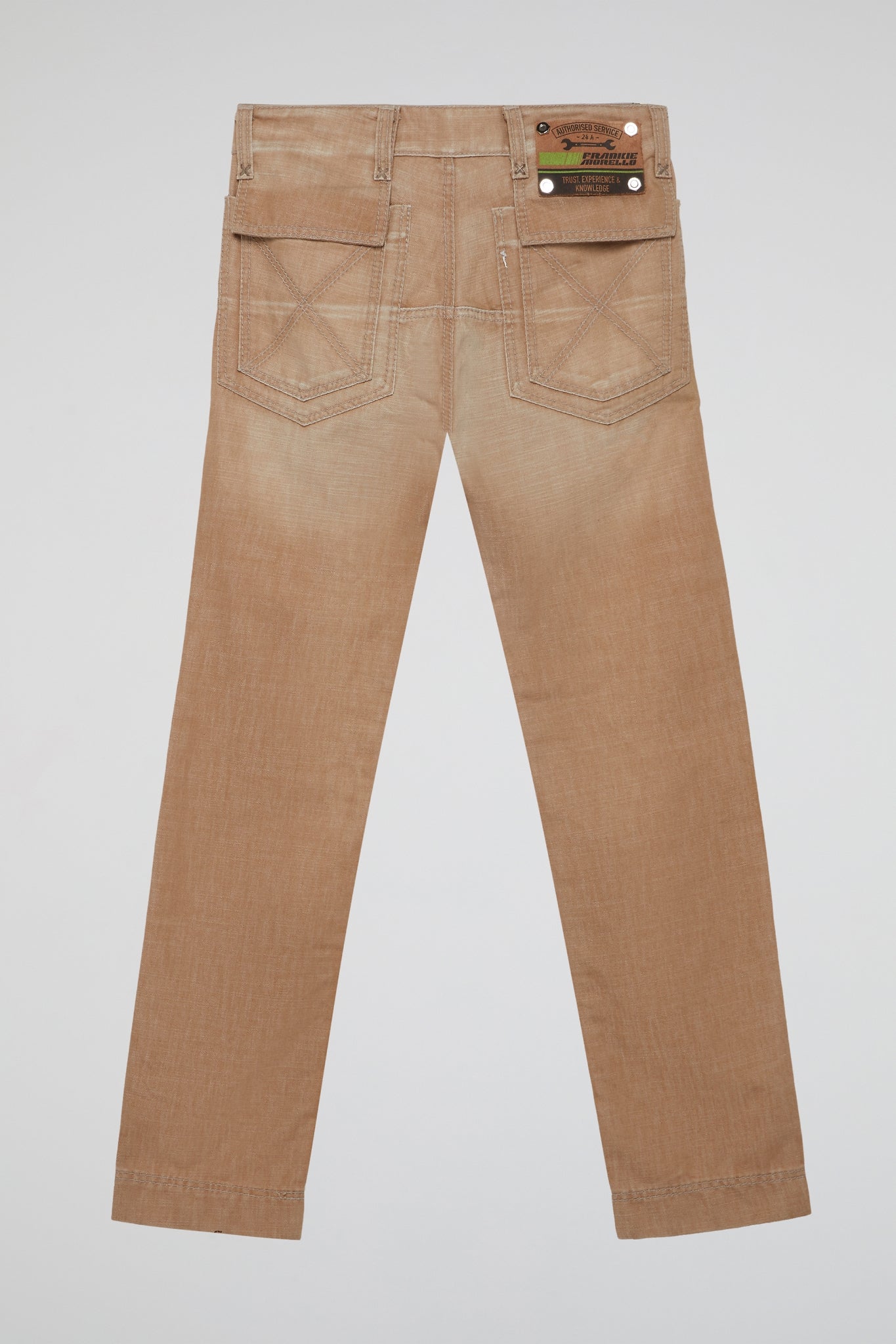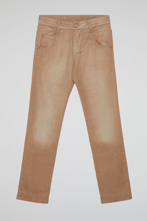 Embrace effortless style with the Brown Vintage-Wash Straight-Leg Jeans by Frankie Morello, a perfect blend of rugged charm and modern minimalism. Designed in a warm sand-toned hue with a subtle faded wash, these jeans bring a unique twist to classic denim. The straight-leg cut offers a relaxed yet structured fit, making them a versatile staple for any wardrobe. Crafted from high-quality denim, these jeans feature a classic five-pocket design, button-fly closure, and distressed seam detailing, adding to their vintage appeal. Whether paired with a crisp white tee for casual days or dressed up with a sleek blazer, these jeans exude effortless sophistication.