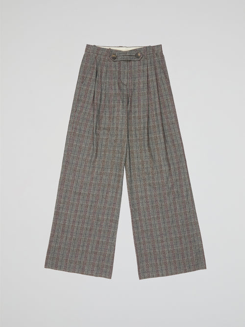 Grey Tartan Patterned Trousers