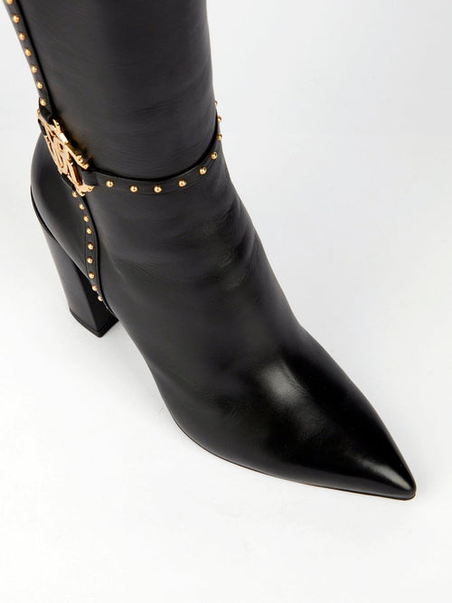 Black Leather Knee High Boots