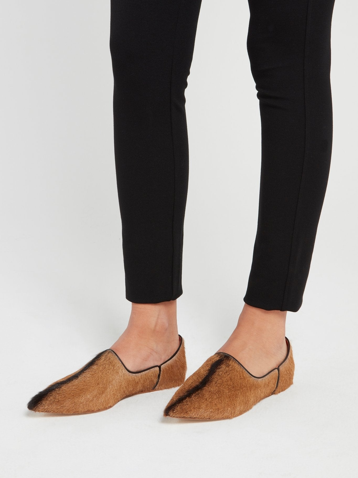Indulge in luxurious comfort with Roberto Cavalli's Goat Hair Babus Flats. Crafted with premium goat hair and leather, these flats are both stylish and opulent. The chic and sophisticated design is perfect for adding a touch of glamour to any outfit, while also providing unparalleled durability and comfort. Elevate your shoe game with these fashion-forward flats that are sure to turn heads.